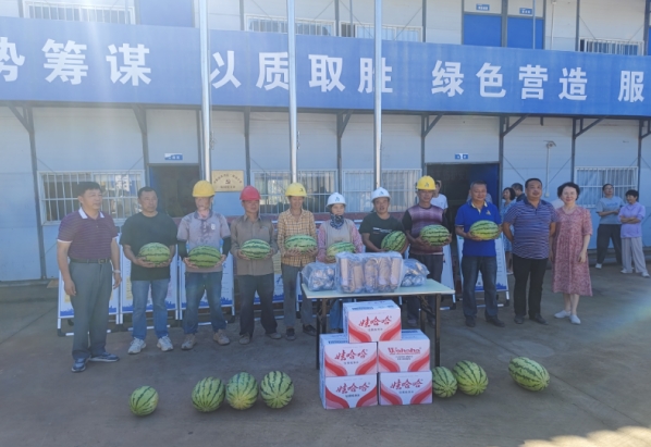 2025年7月24日上午,由黄山市建筑业协会会长徐树红带队,协会秘书长耿任飞、副秘书长张伟及县协会领导一行,来到我公司安地书院项目施工现场开展送清凉活动,慰问组为一线建筑工人送上了矿泉水、西瓜等防暑降温物资,也送来了贴心问候。